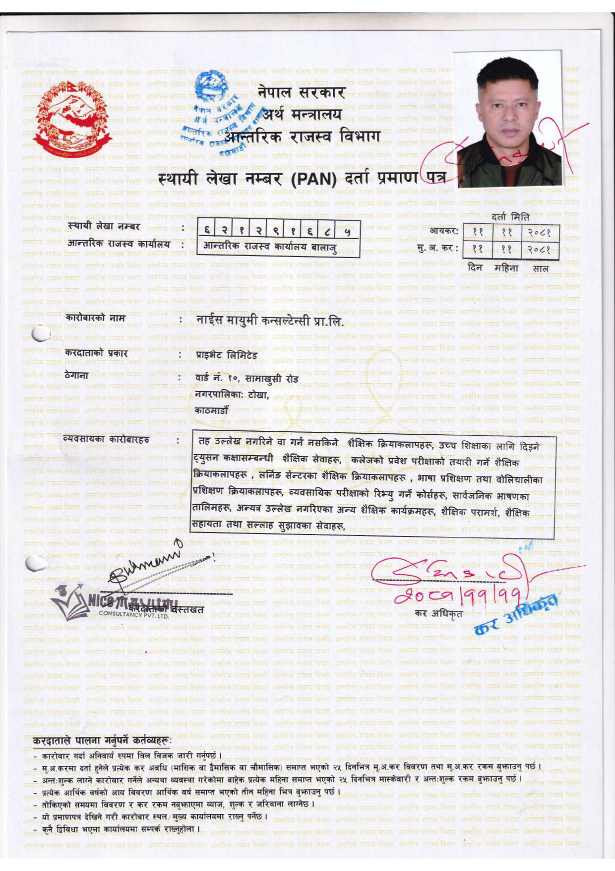 - Registered Business Name: Nice Education Consultancy Pvt. Ltd.